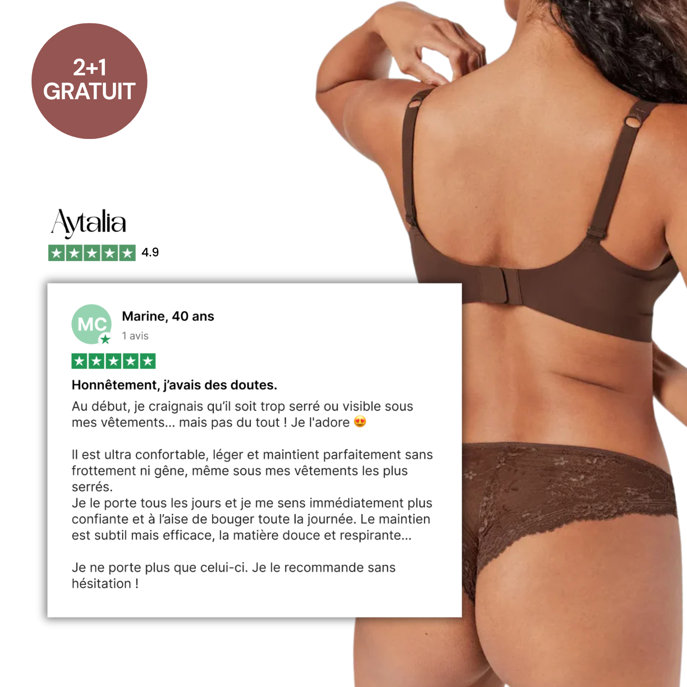 Enfin un soutien-gorge qui maintient vraiment sans armature. Je n'ai plus mal au dos et il sculpte naturellement la poitrine tout en restant invisible. Je recommande à 100 %.